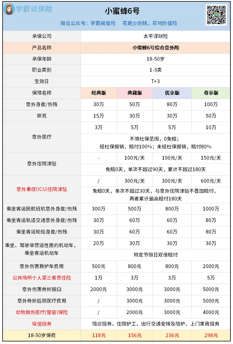 保费低至118元,意外身故/全残保额就有30万,谁都能买得起。