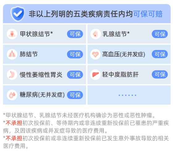 比如甲状腺结节、乳腺结节、肺结节等情况,符合规则都是可保可赔的。