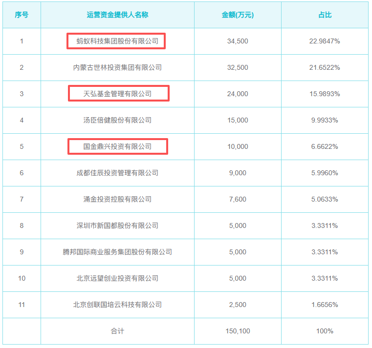 比如蚂蚁集团(支付宝背后的主体之一、互联网领域的龙头)、天弘基金(管理规模超万亿的公募基金、余额宝的管理人)、国金鼎兴(国资背景的投资机构)。