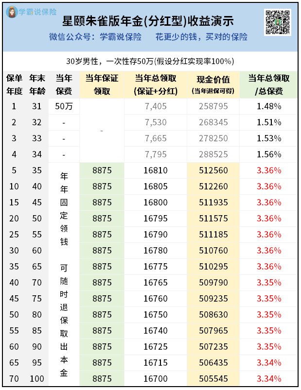 最直观的好处是,只要老杨活着,就能一直领钱养老,完美解决养老需求。