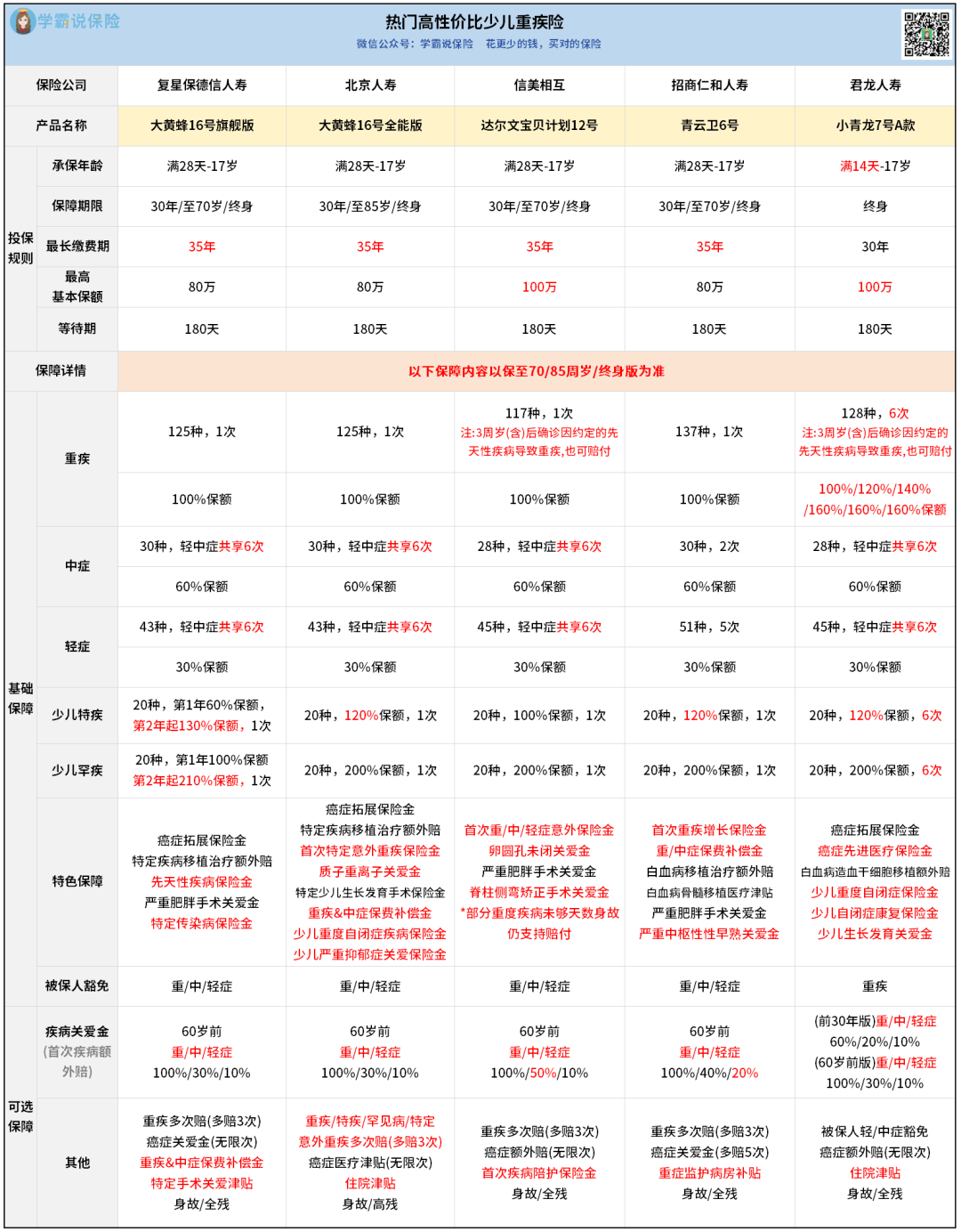 今天,我从市面上筛选出5大爆款少儿重疾险,