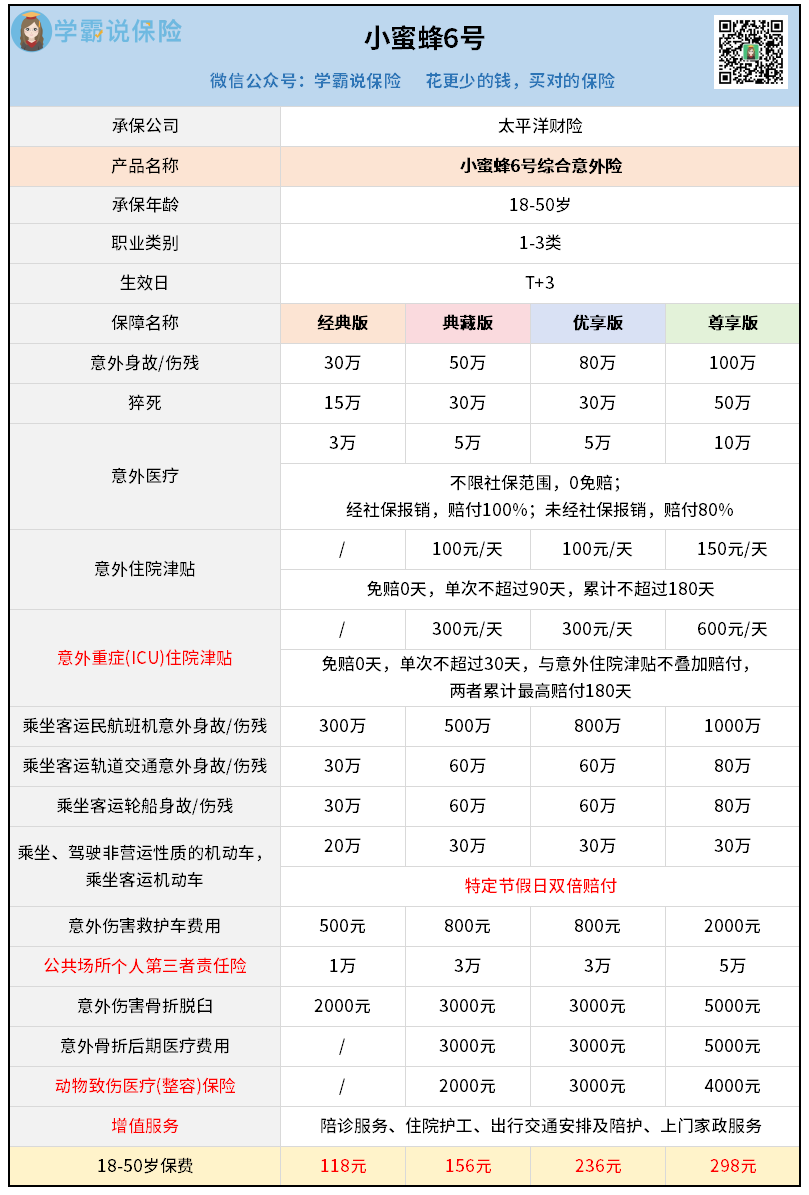 意外身故/伤残和意外医疗,小蜜蜂6号都覆盖了,