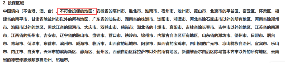 另外还有投保区域限制,以及部分医院不在保障范围内,