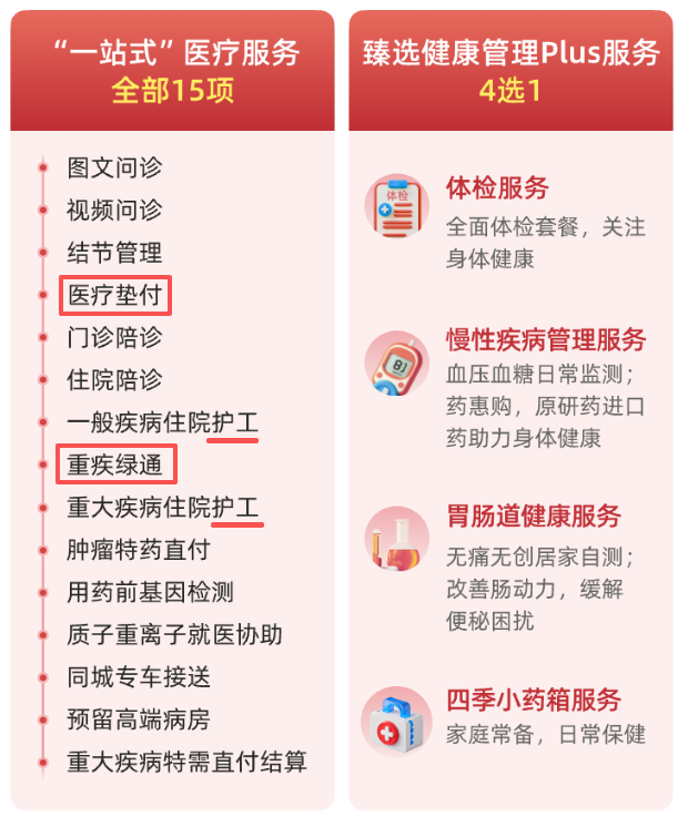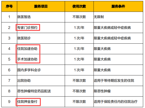 比如重疾绿通、费用垫付、免费体检、护工服务等等,
