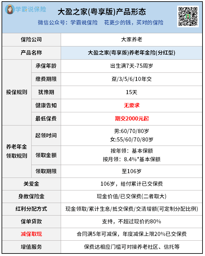 大家养老的大盈之家(粤享版)分红型。