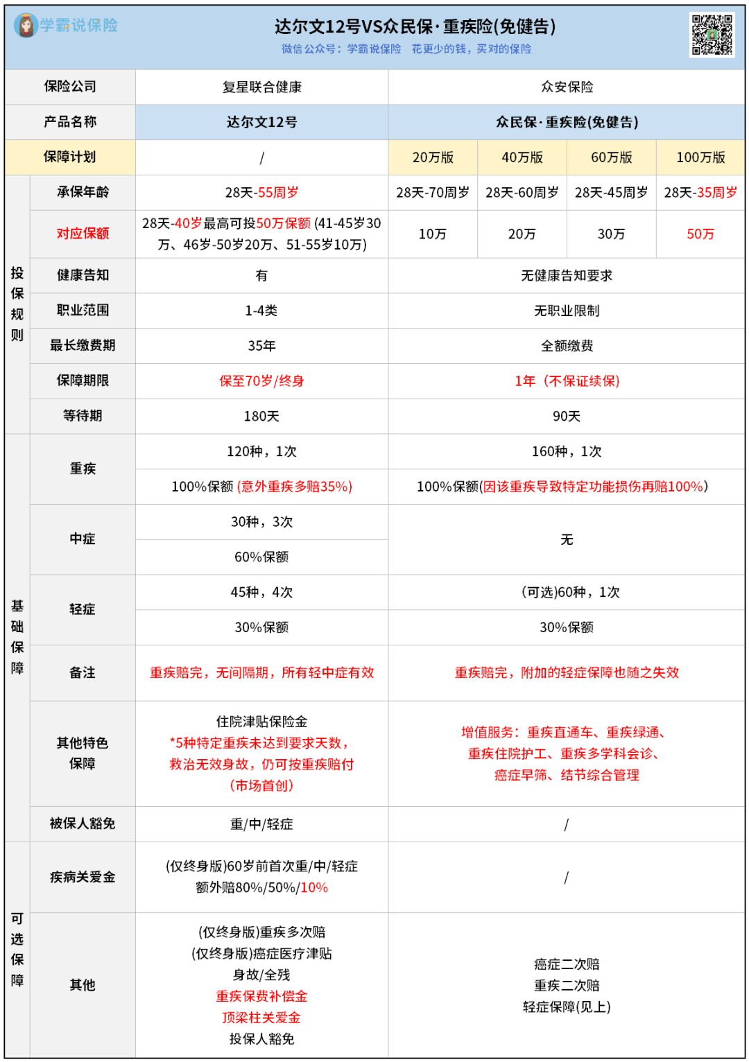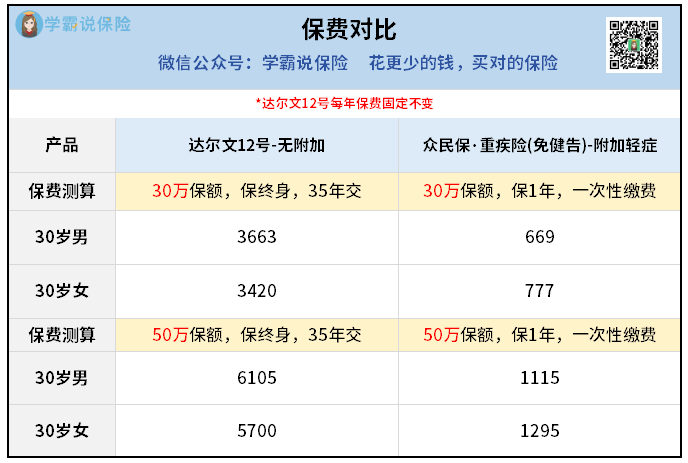 达尔文12号保费贵很多,但优势也很明显: