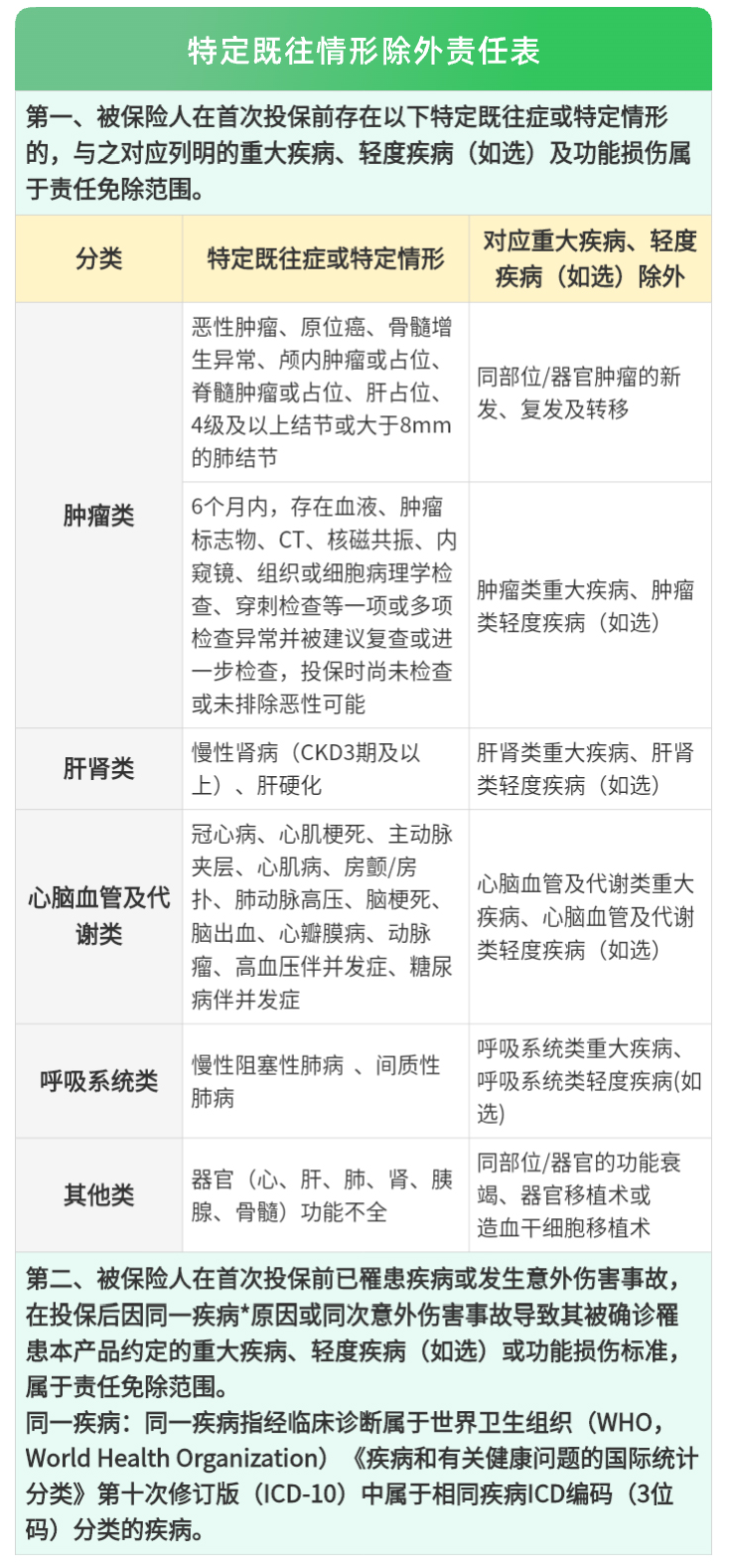 但如果之前已患合同列明的严重既往症(如癌症、冠心病等),