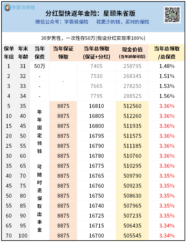 如果你也有一笔未来5年用不上的闲钱,就可以考虑入手这种快返年金。