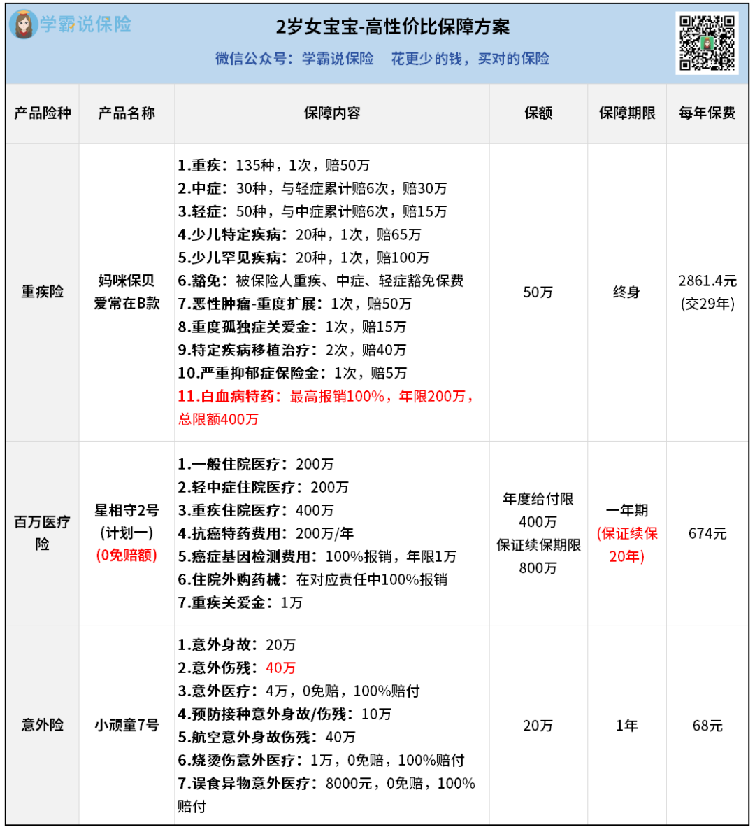 如果你也想给孩子补充更多的保障,或者攒一笔未来的钱,就可以参考今天的方案来进行规划。