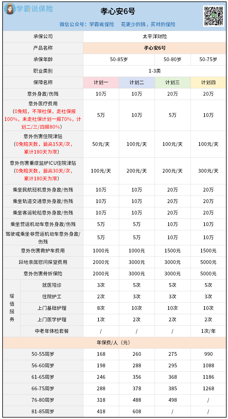 老人意外险:孝心安6号