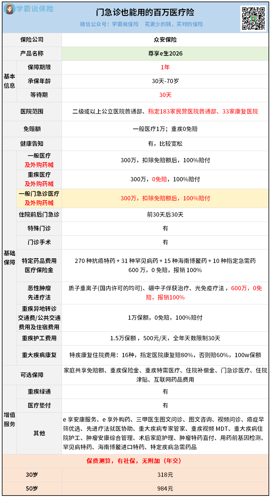 但我更想推荐自带门急诊的尊享e生2026: