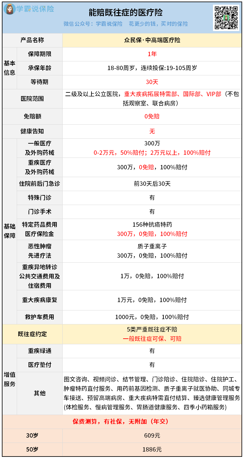 凡事总有例外,比如这款众民保·中高端医疗险: