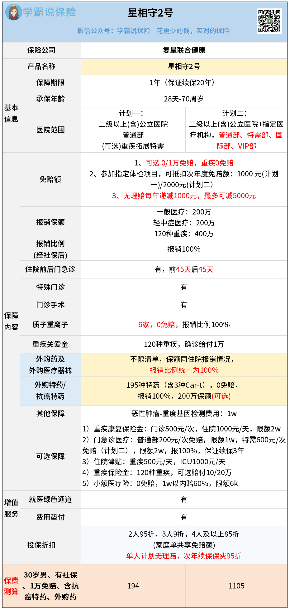 价格也很划算,30岁买一年保费194块,每天只要5毛多。