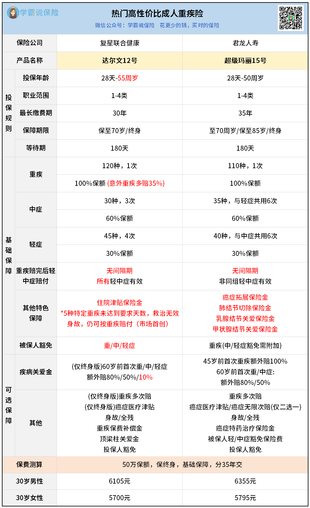 这俩是成人重疾里的 “性价比天花板”,出了名的便宜大碗!