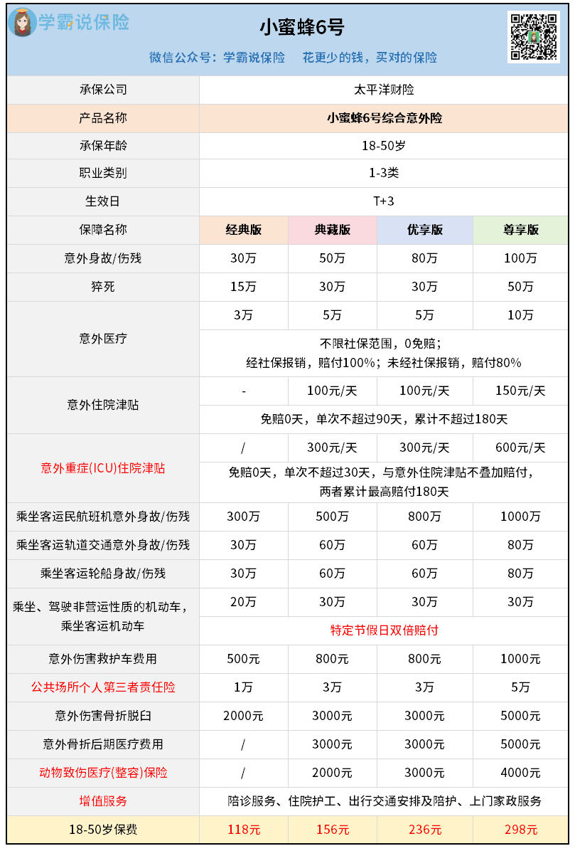 先看保障最全面的一款,小蜜蜂6号: