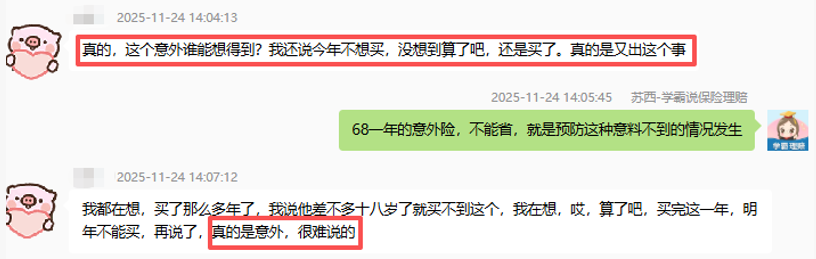 而这份底气来自犹豫续保时,她对自己说的:“算了,再买一年吧。”
