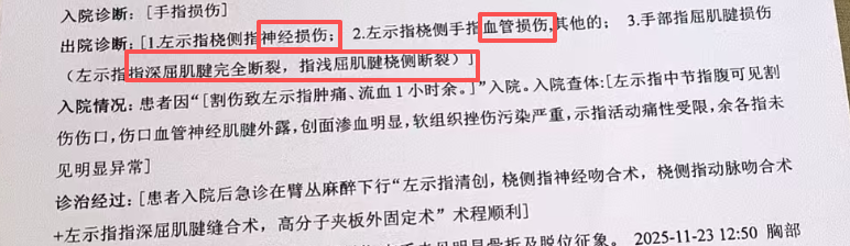 出险事由:割伤手指