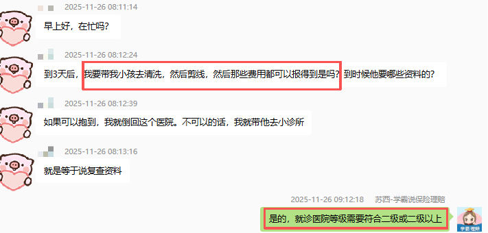 并且很贴心地提醒她,就诊医院要符合二级及以上。