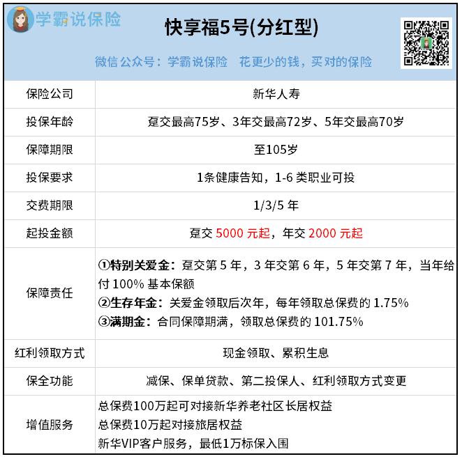 快享福5号的承保公司是新华人寿,老牌“老七家”之一,实力碾压同行。