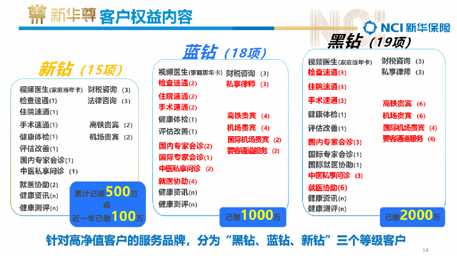“新华瑞”,分成5个星级提供不同服务: